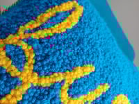- Though a professional-grade carpet adhesive is used when finishing each piece, your art may shed a bit and that's totally normal. I vacuum and lint roll every item before it gets packed up, but you will likely notice some occasional stray yarn upon receipt and over time.